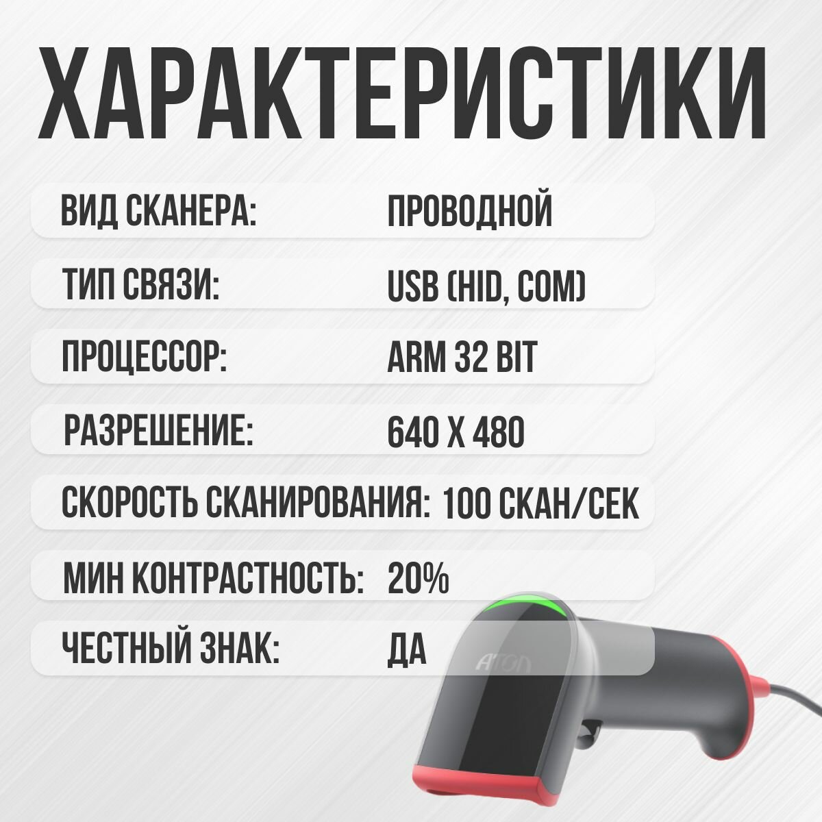 Сканер штрих-кода / АТОЛ Impulse 12 / 2D сканер штрихкода / сканер для кассы / сканер для магазина / сканер для маркировки / сканер QR- кода / для ЕГАИС, Честный знак, АТОЛ, Мой Склад, эвотор, Меркурий, МТС-касса, 1С предприятие и др.
