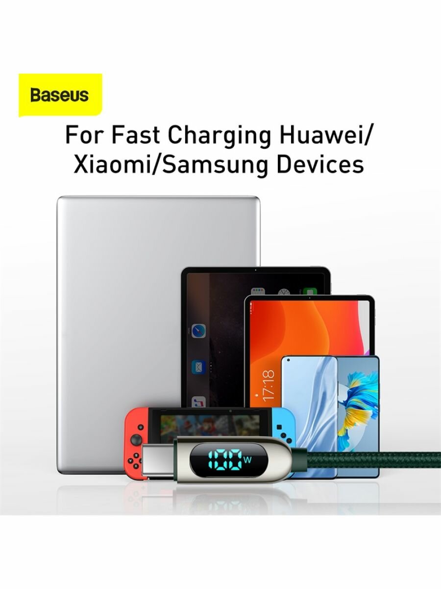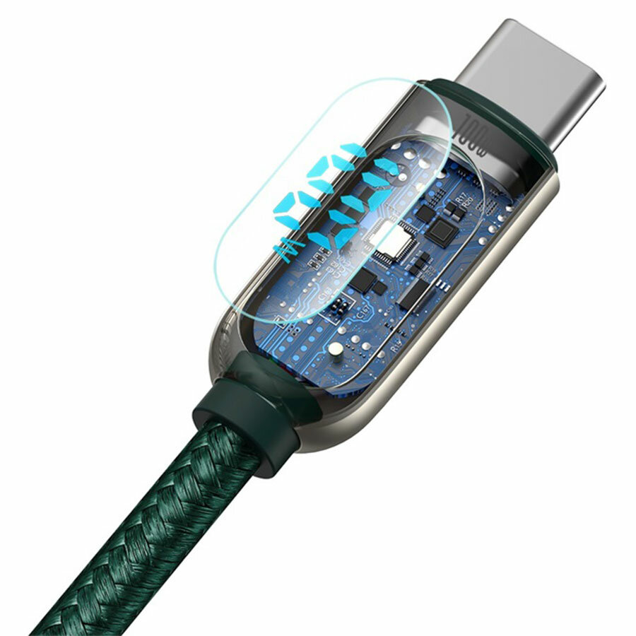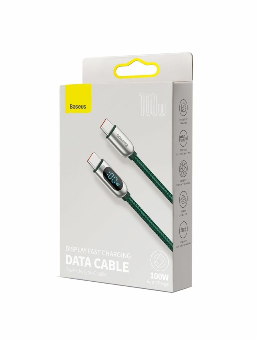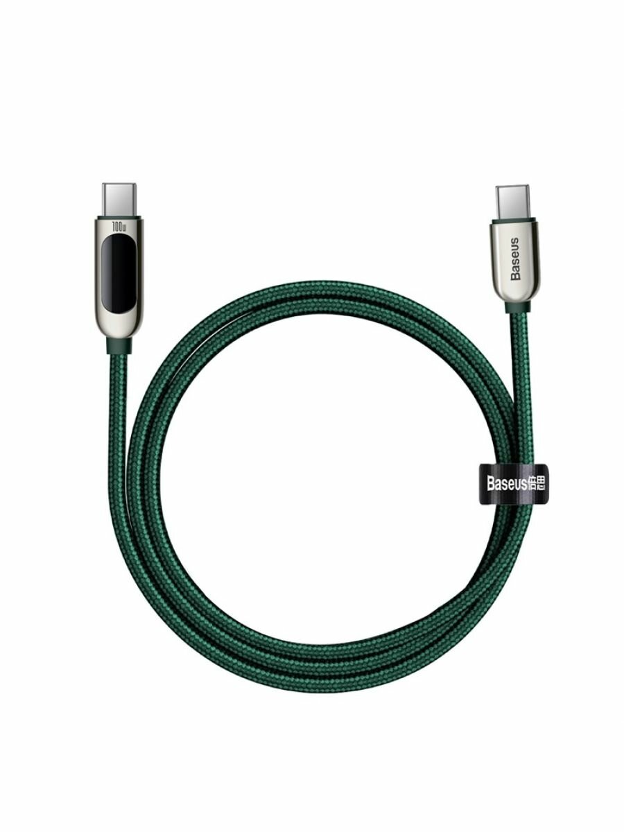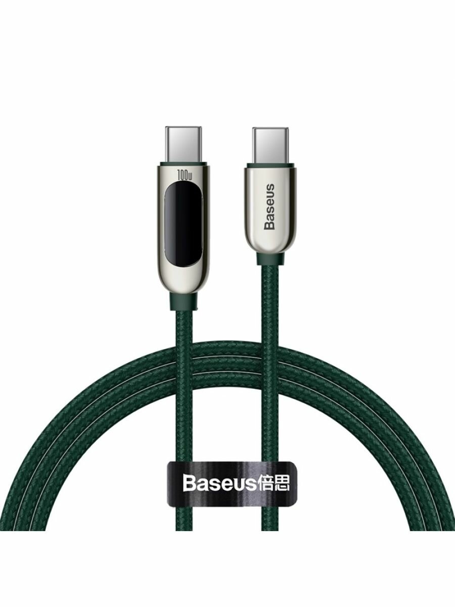 Кабель для быстрой зарядки и передачи данных BASEUS Display Fast Charging, Type-C - Type-C, 100W, 5A, 1 м, Зеленый