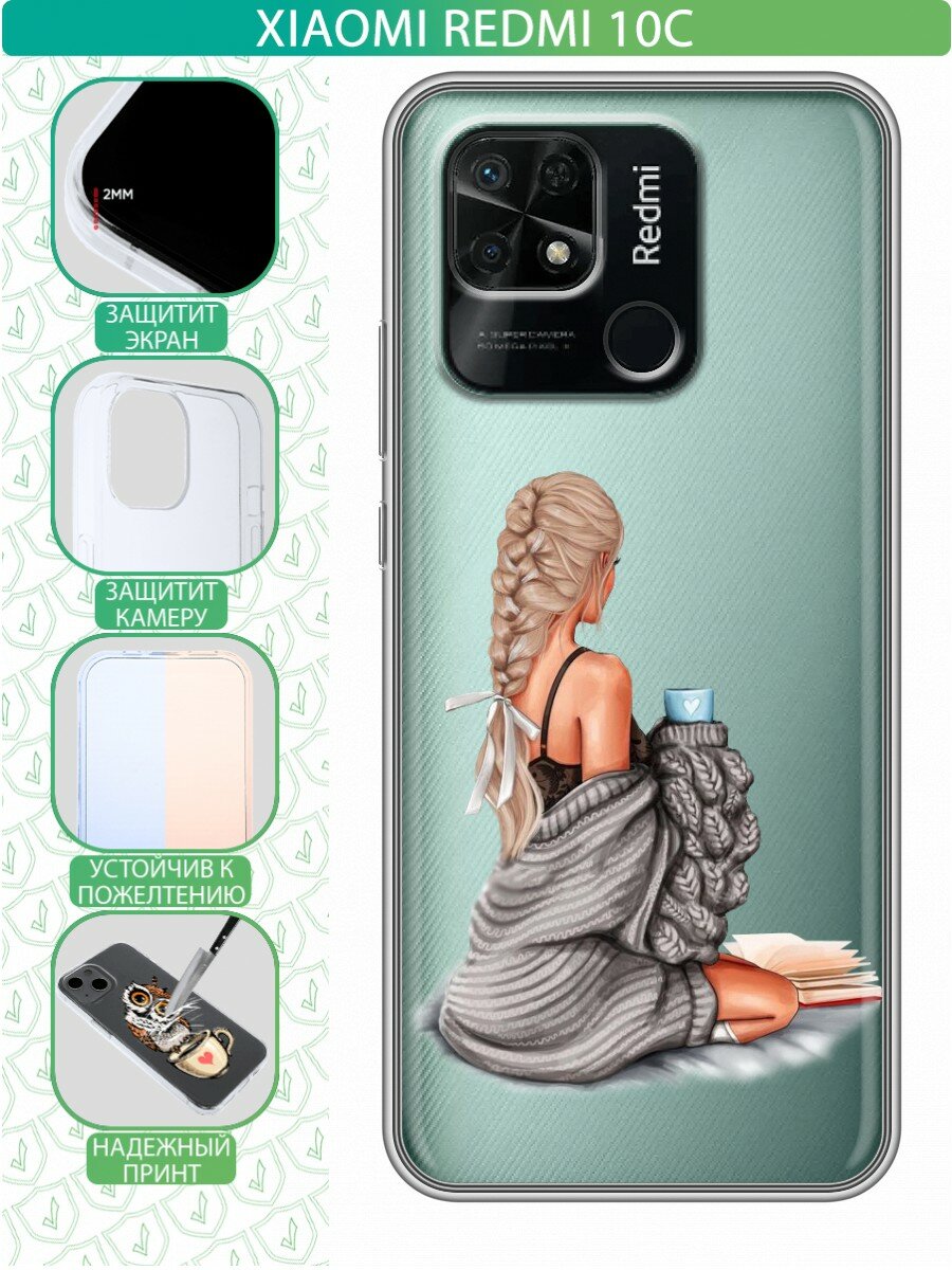 СохранитьПолупрозрачный дизайнерский силиконовый чехол для Редми 10C / Xiaomi Redmi 10C Девушка и кофе интересное:
