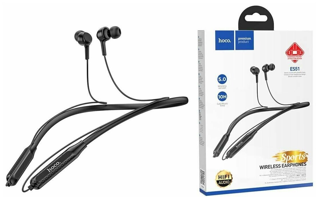 Наушники беспроводные HOCO ES51 Era sports wireless earphones Блютуз наушники/ Для спорта/ Для тренировок/ С микрофоном/ Bluetooth 130mAh 10 часов проигрывания черные