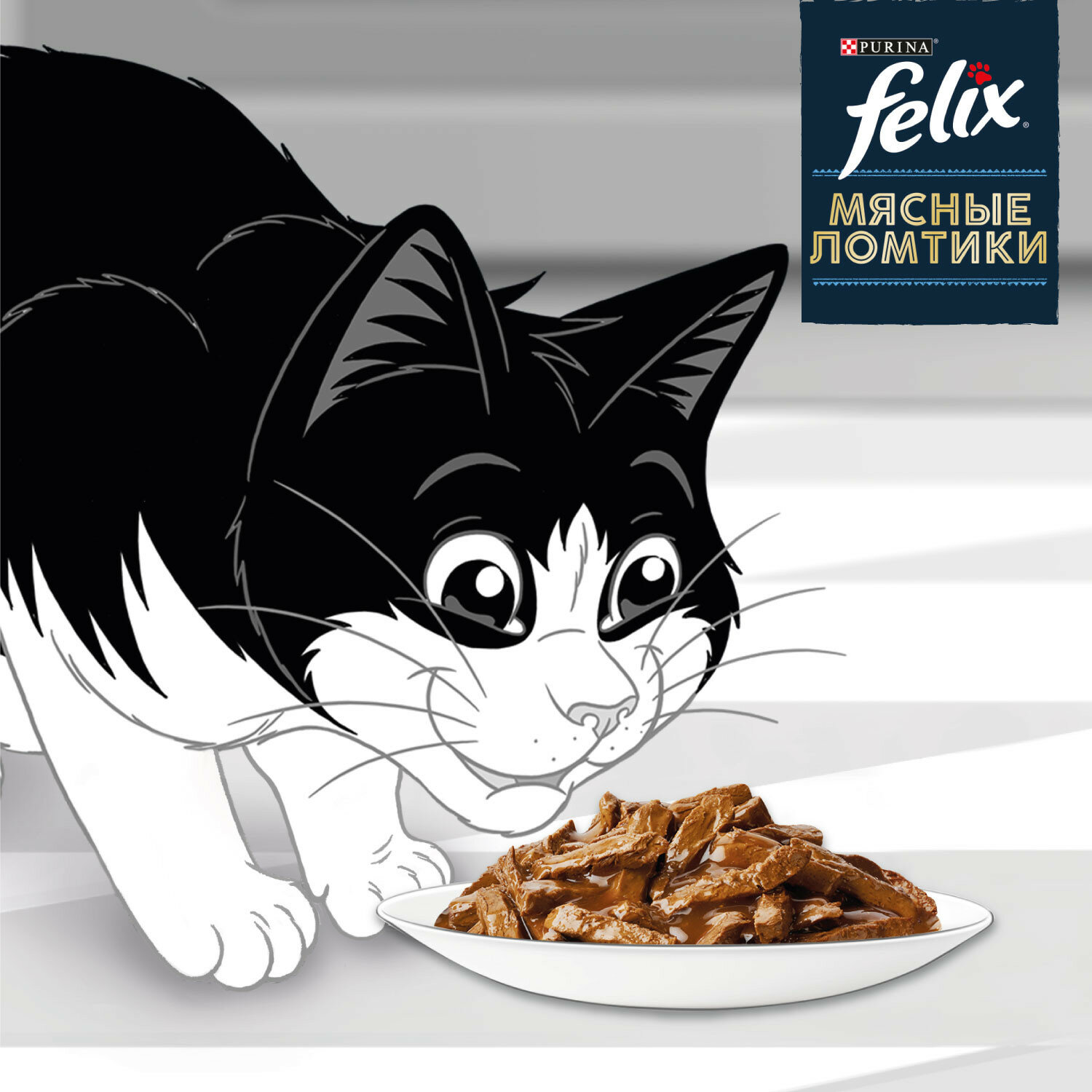 FELIX® Мясные Ломтики. Корм консервированный полнорационный для взрослых кошек, с уткой, Пауч, 26х75г