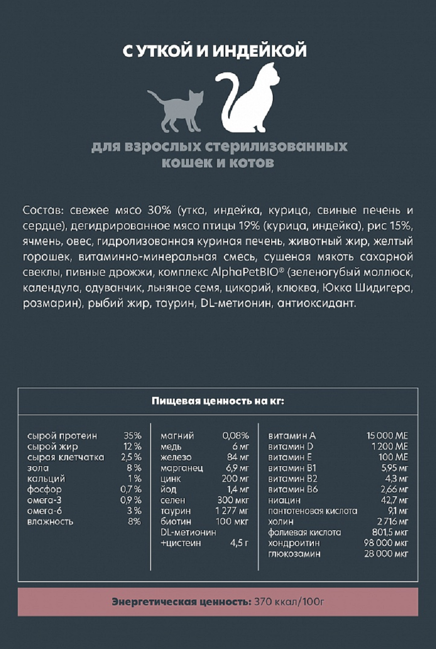 AlphaPet Superpremium - Сухой корм для взрослых стерилизованных котов и кошек, с Уткой и Индейкой (3 кг)