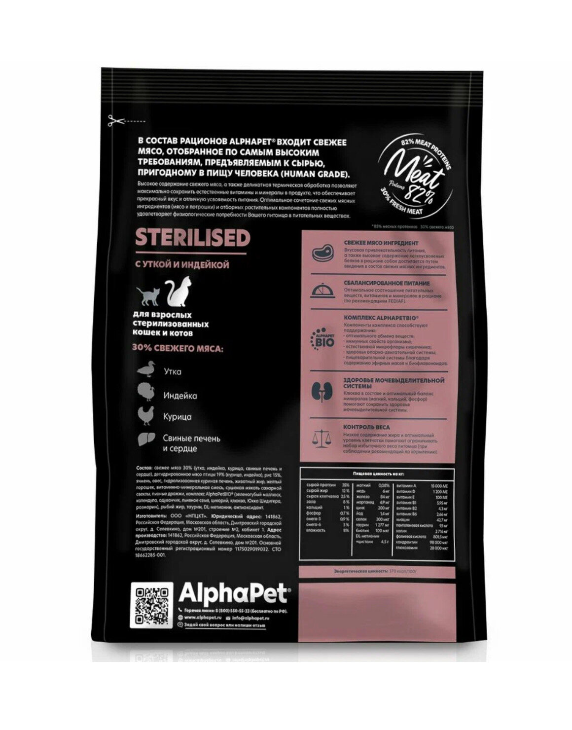 Корм AlphaPet Superpremium для стерилизованных кошек, c уткой и индейкой, 400 г
