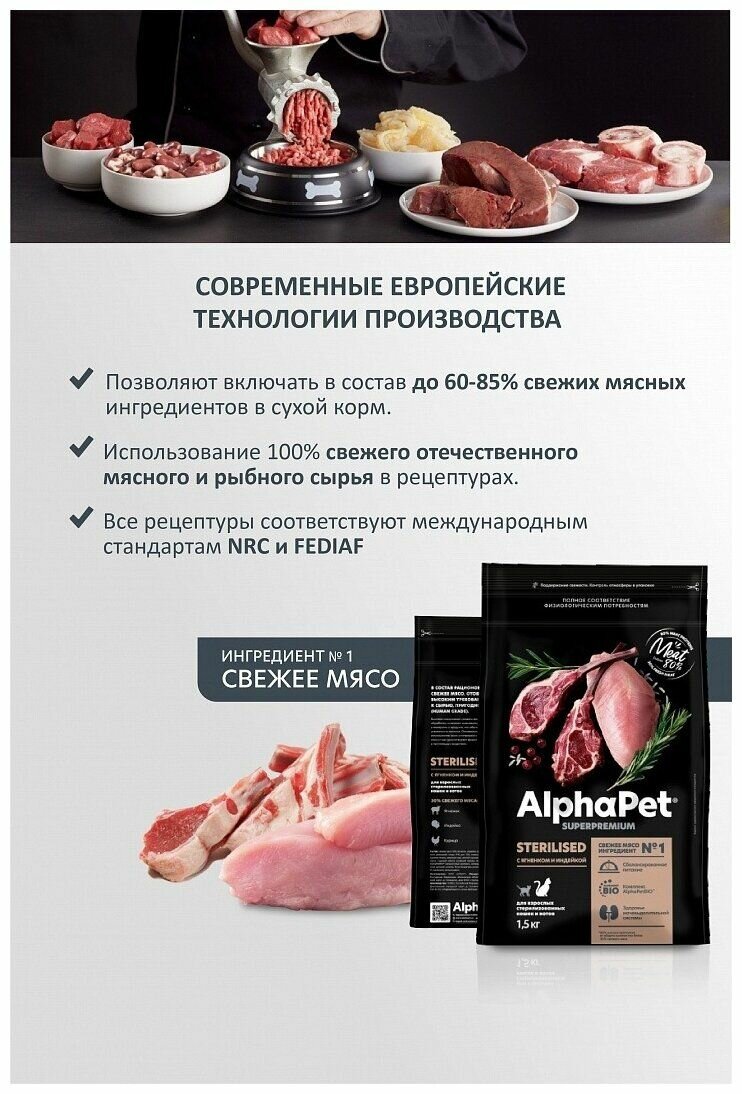 AlphaPet Monoprotein 2шт по 1,5кг корм для кошек из индейки