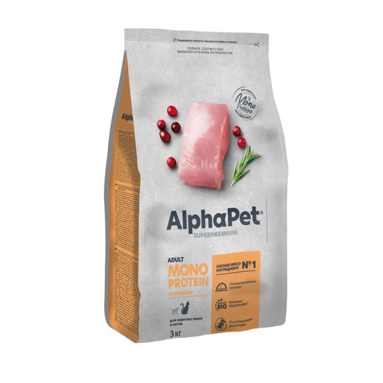 AlphaPet MONOPROTEIN сухой корм для кошек из Индейки 3кг