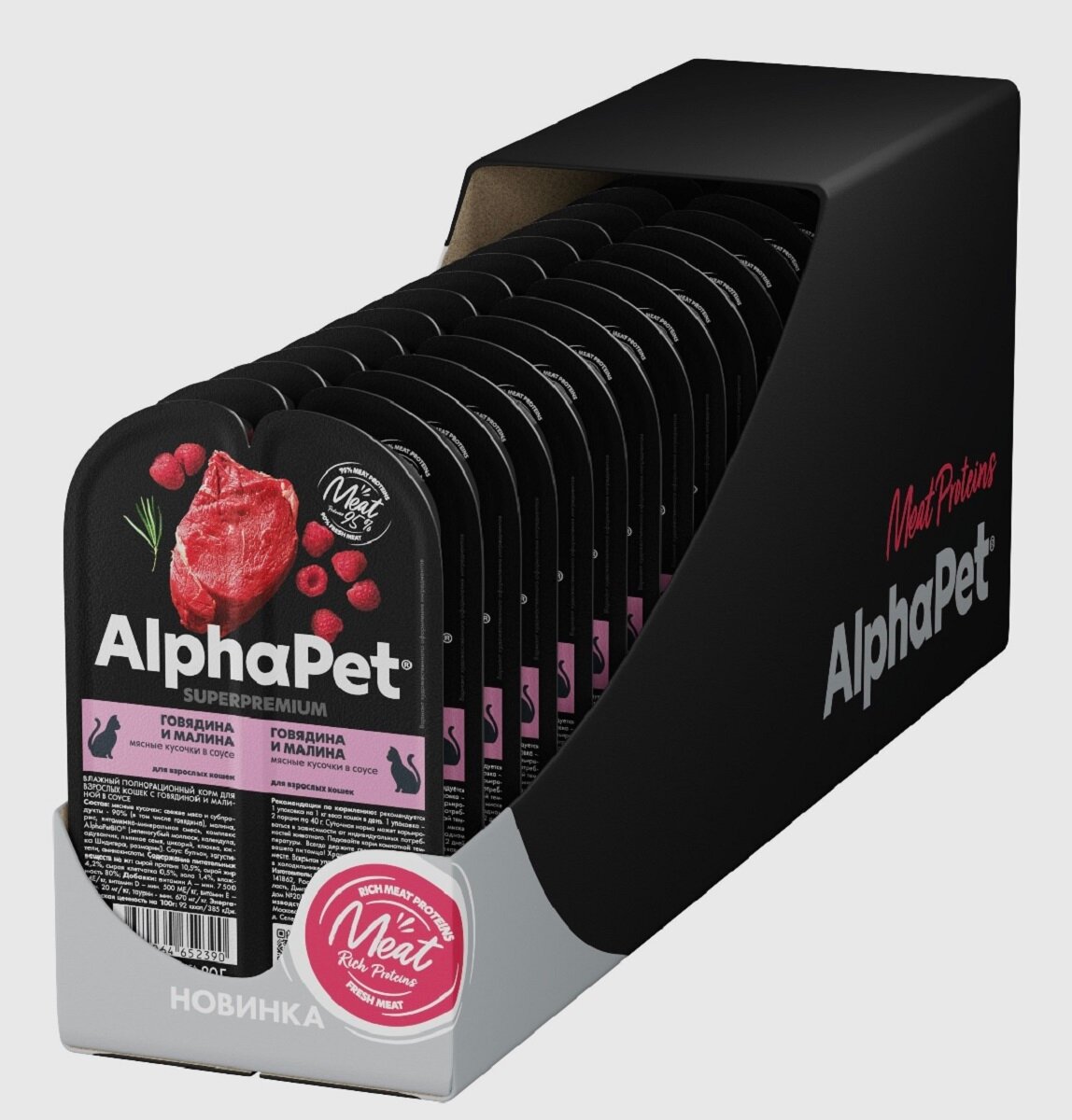Купить Влажный корм для кошек AlphaPet Superpremium с говядиной и малиной в соусе упаковка 15 шт * 80 гр