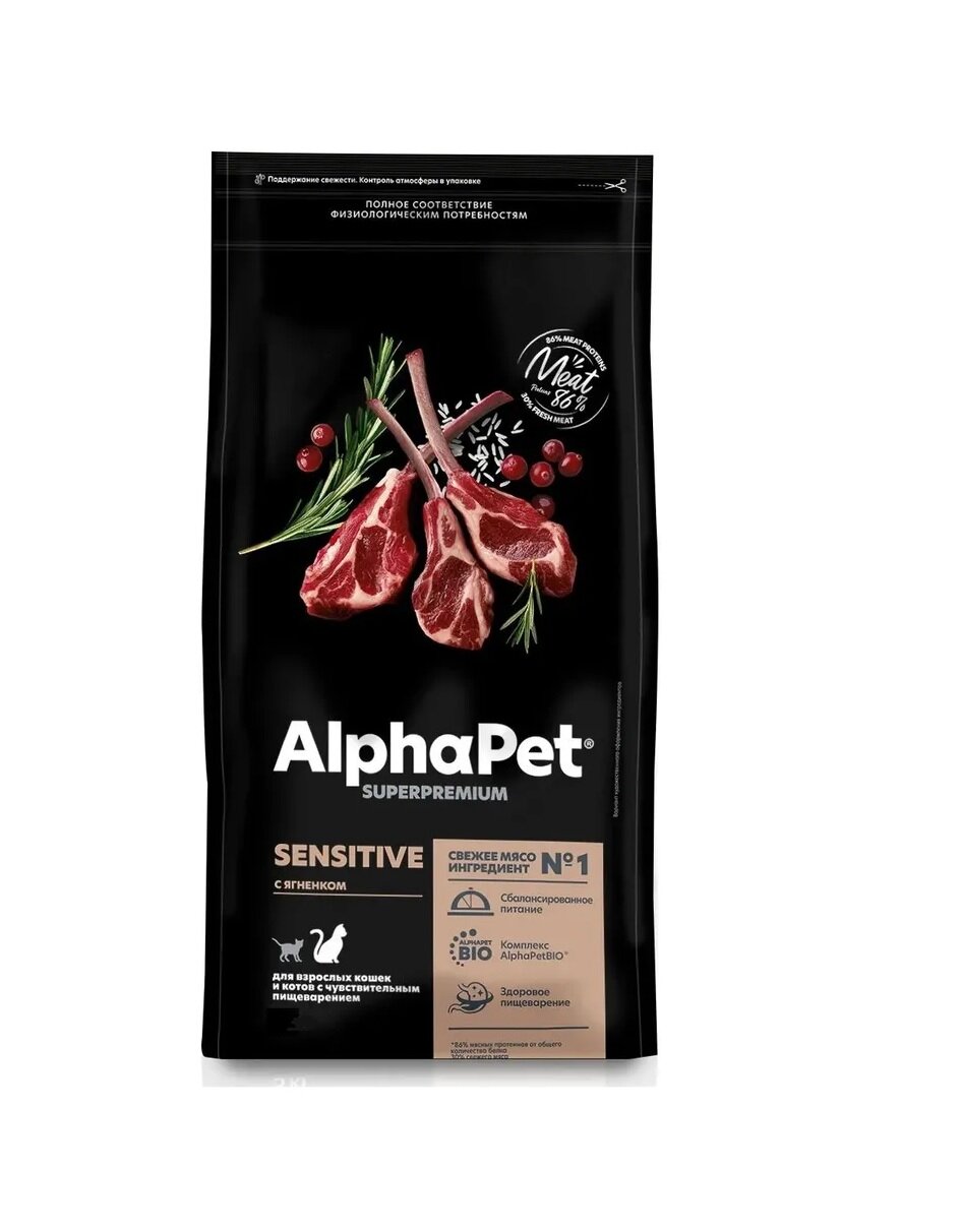 AlphaPet Superpremium сухой корм для кошек с чувствительным пищеварением Ягненок 7кг