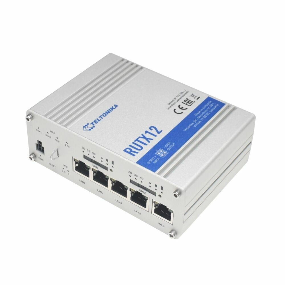 Маршрутизатор RUTX12 (RUTX120100) ДВА модема 4G (LTE) cat6 / 3G . 2x SIM / W-Fi 5 / 4x Gigabit RJ-45 / USB 2.0 / GPS/GNSS / BLE