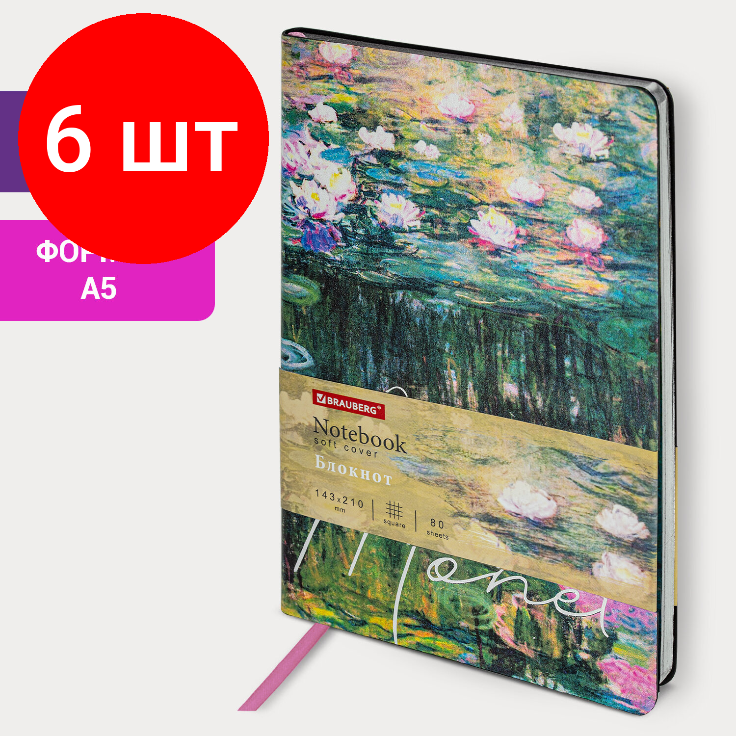 СохранитьКомплект 6 шт, Блокнот А5 (143x210 мм), BRAUBERG VISTA "Claude Monet", под кожу, гибкий, срез фольга, 80 л., 112058 интересное: