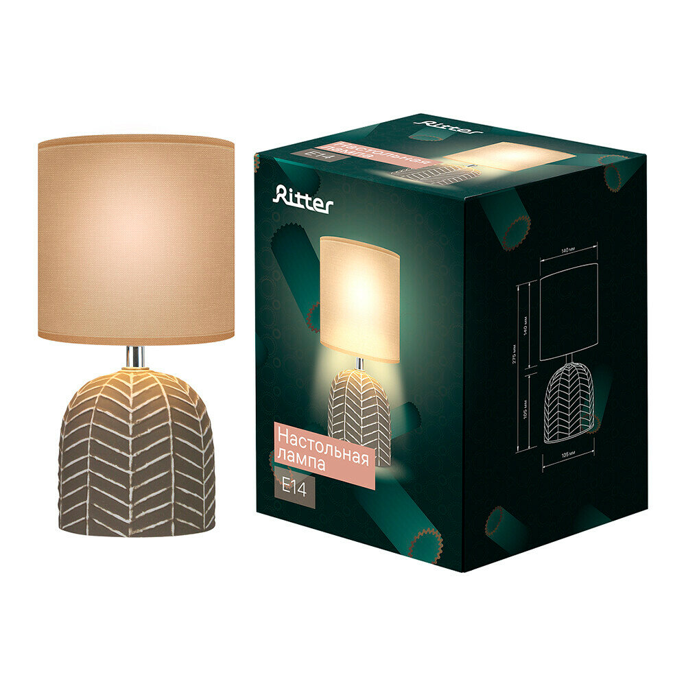 Ritter Настольная лампа "Беренис" 1х40Вт Е14 провод-1,3м бежевый 14х14х27,5см