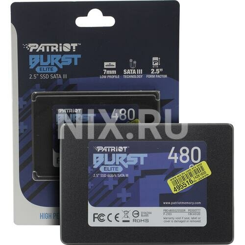 Накопитель SSD 2.5'' Patriot Memory PBE480GS25SSDR Burst Elite 480GB 6Gb/s 450/320MB/s IOPS 40K/40K MTBF 2M 7mm