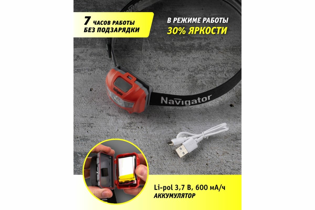 Фонарь Navigator 14 037 NPT-H16-ACCU налоб. 1CREE LED,3Вт,4 реж.Li-pol 0,6Ач