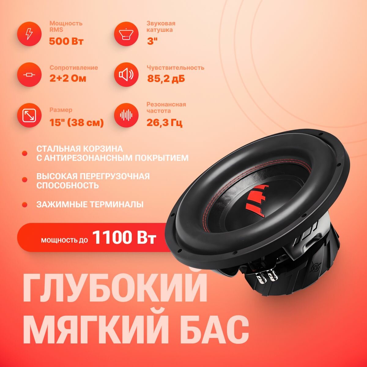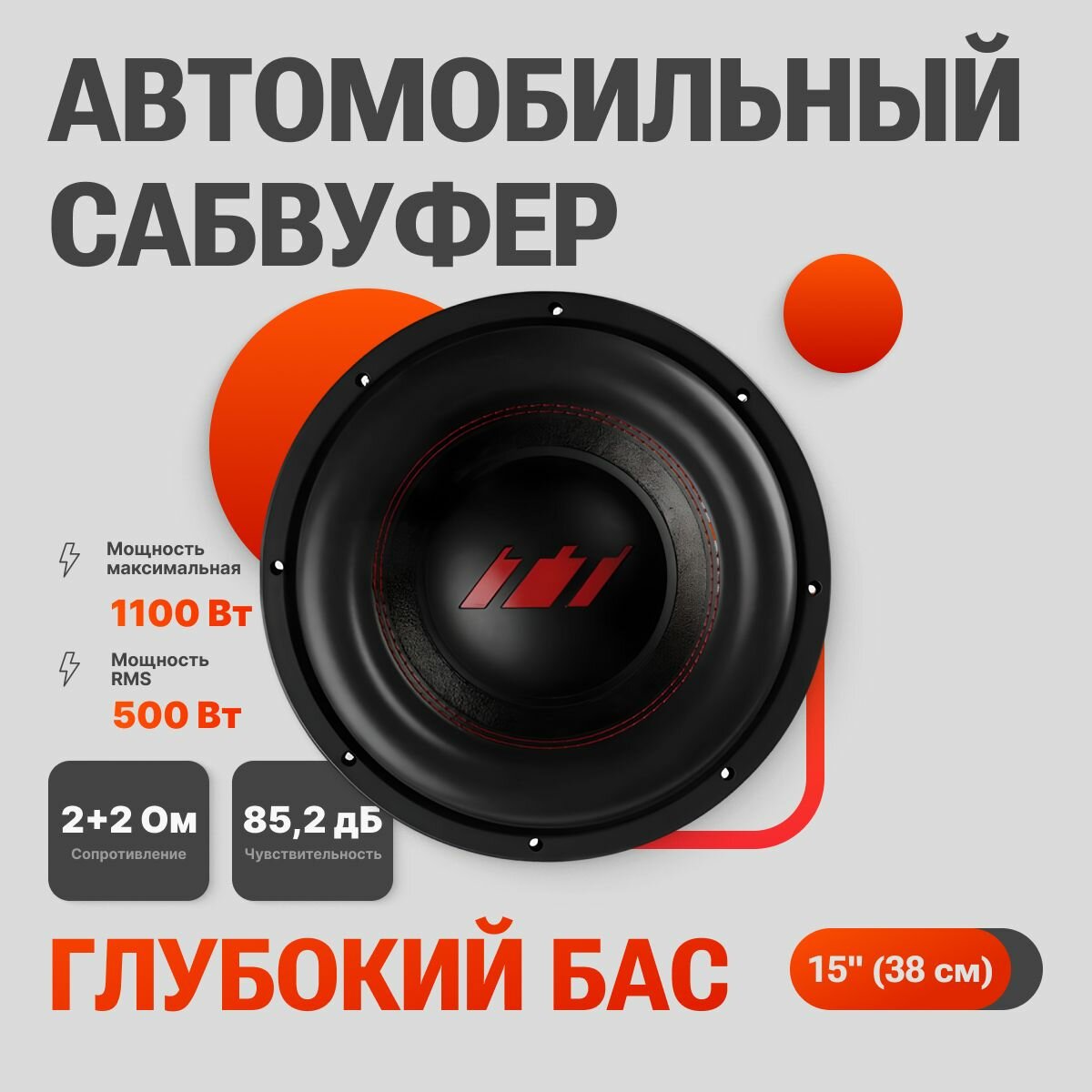 Сабвуфер URAL сабвуфер ТТ 15 39 см, 1100 Вт, черный/красный