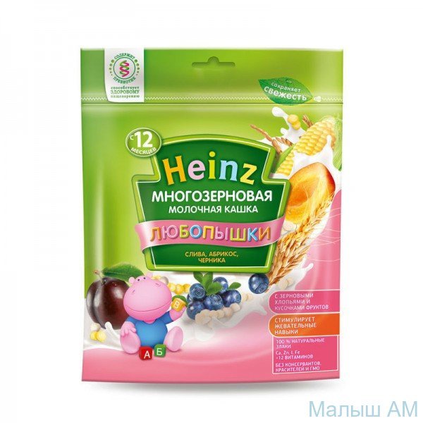 Каша Heinz молочная Любопышки многозерновая со сливой, абрикосом, черникой (с 12 месяцев) 200 г