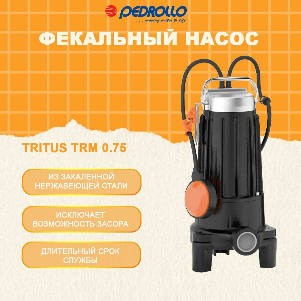 Насос фекальный Pedrollo TRm 0.75 (0,75 кВт, 1x230 В, Qmax 125 л/мин, Hmax 16,5 м, кабель 10 м) интересное: