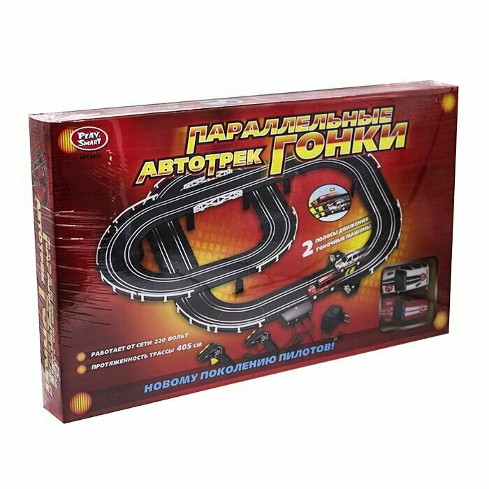 Автотрек Play Smart "Параллельные гонки" (405 см.) от сети 220в, в коробке (824)