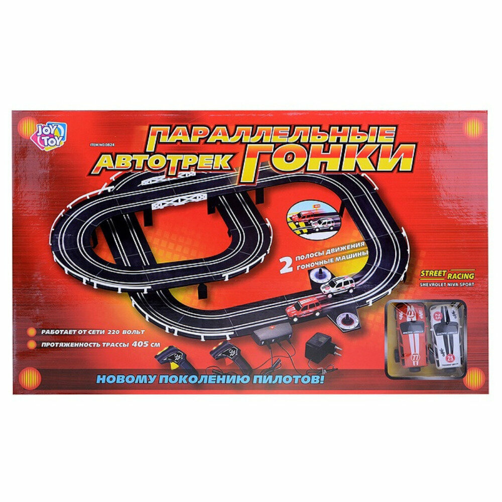 Автотрек 0824 "Параллельные гонки" (405 см.) от сети 220в, в коробке