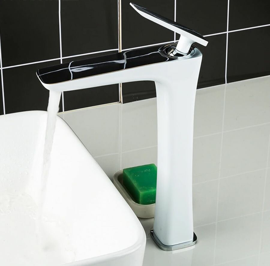 FAOP А1003-2, Смеситель для раковины высокий, керамический картридж 35мм, латунь, белый/хром