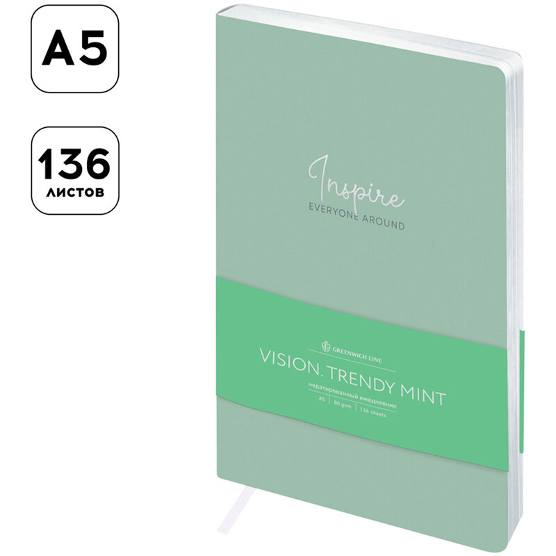 Ежедневник Greenwich Line Vision. Trendy mint недатированный, искусственная кожа, А5, 136 листов, светло-зеленый, цвет бумаги тонированный