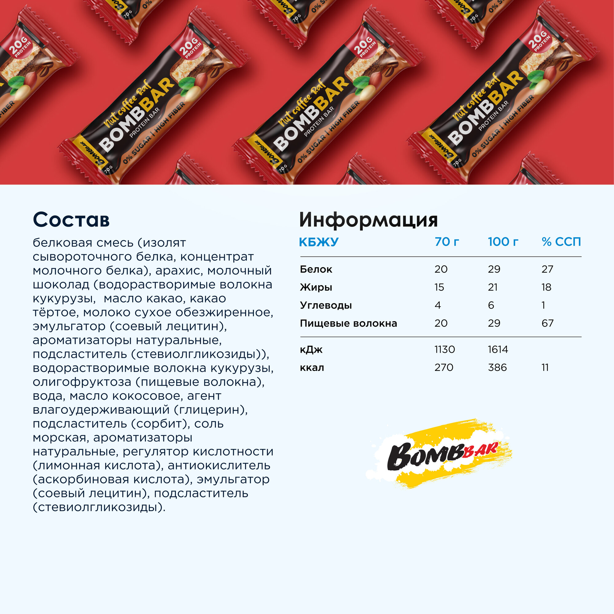 СохранитьBombbar Протеиновые батончики в шоколаде без сахара "Ореховый Кофе Раф", 12шт х 70г интересное: