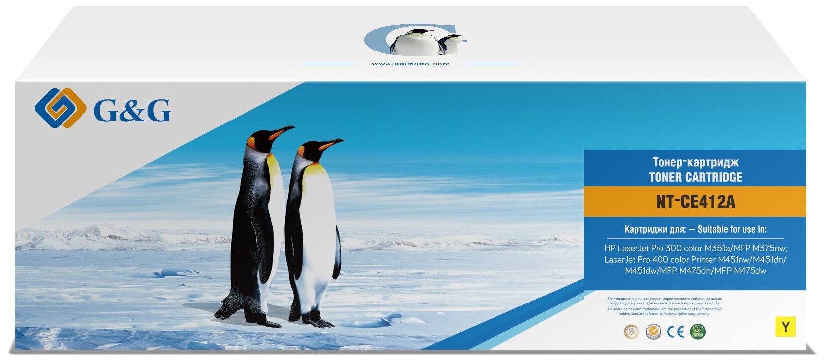 CE412A G&G cовместимый желтый картридж для HP Color LaserJet Pro M351/ M375/ M451/ M475 (2 600ст