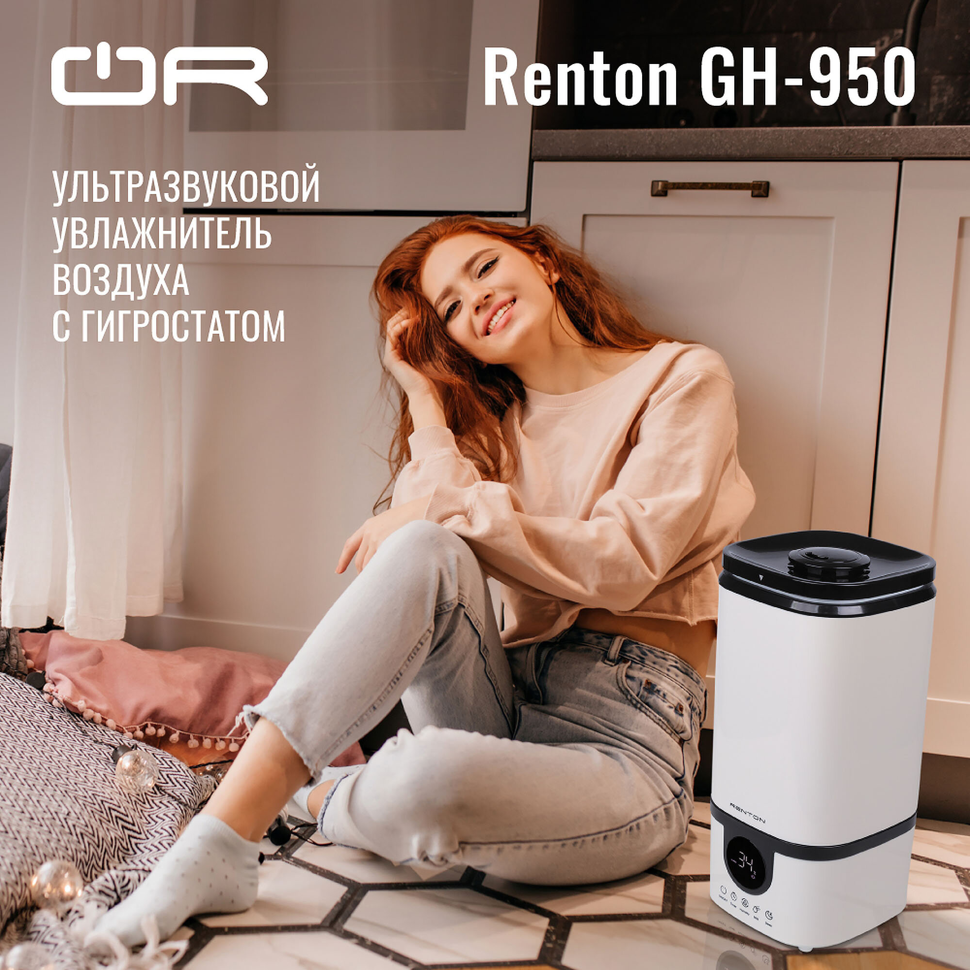 Купить Ультразвуковой увлажнитель воздуха Renton GH-950 для квартиры, бесшумный, надежный, мощный, верхняя заливка, гигростат