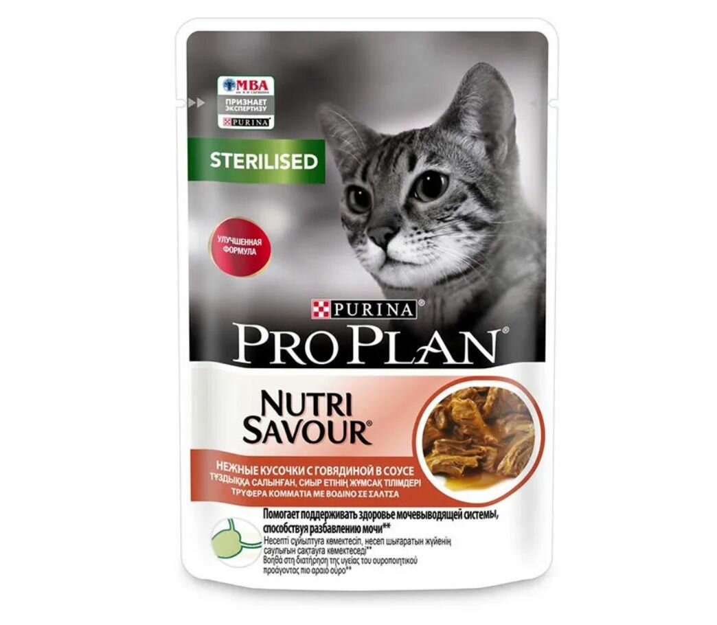СохранитьPro Plan влажный корм для взрослых стерилизованных кошек и кастрированных котов, с говядиной в соусе, 85 г, 2 шт интересное: