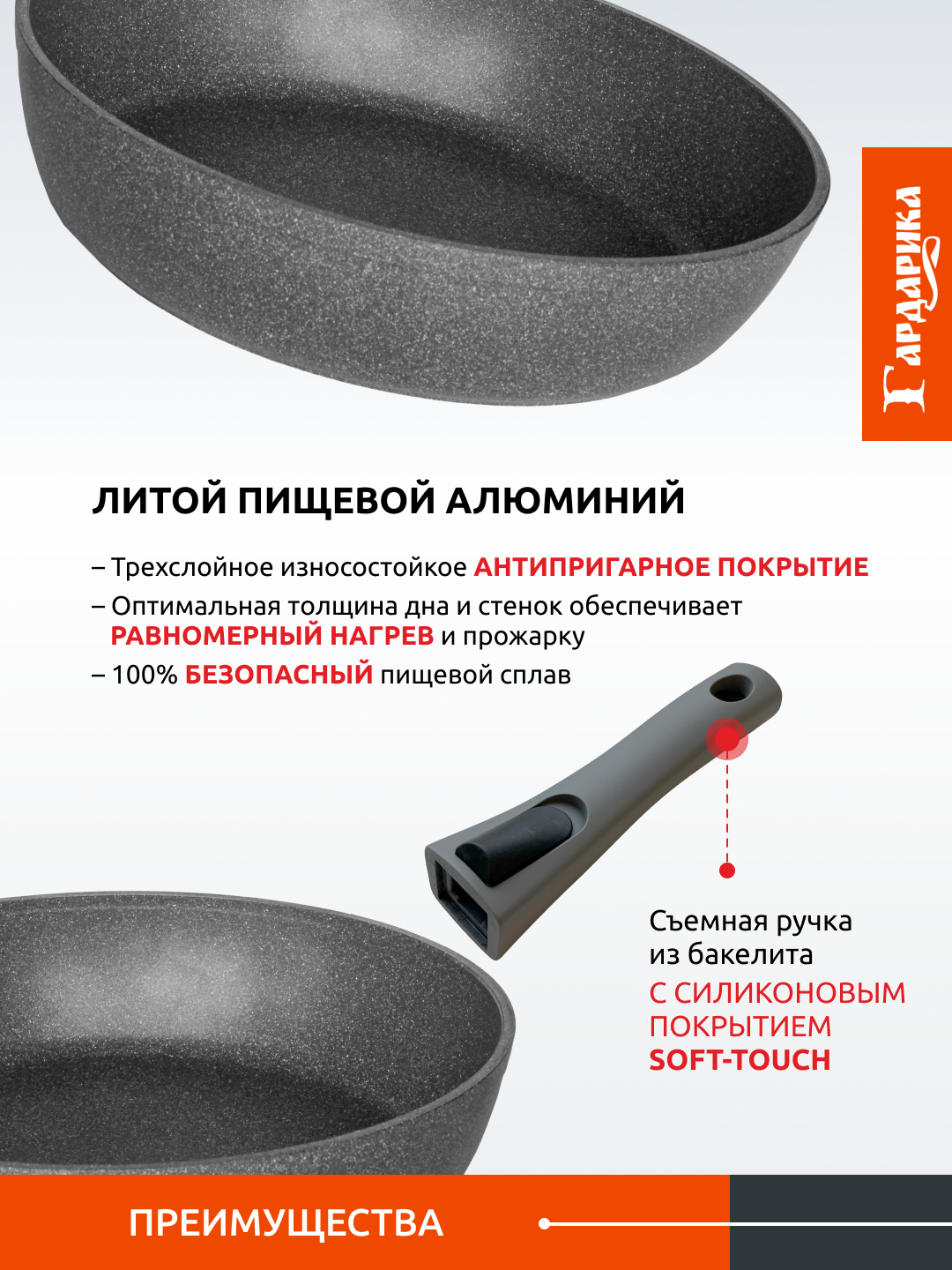Сковорода гардарика "Гранит" с а/п и съемной ручкой soft-touch 24см 1224-06-01