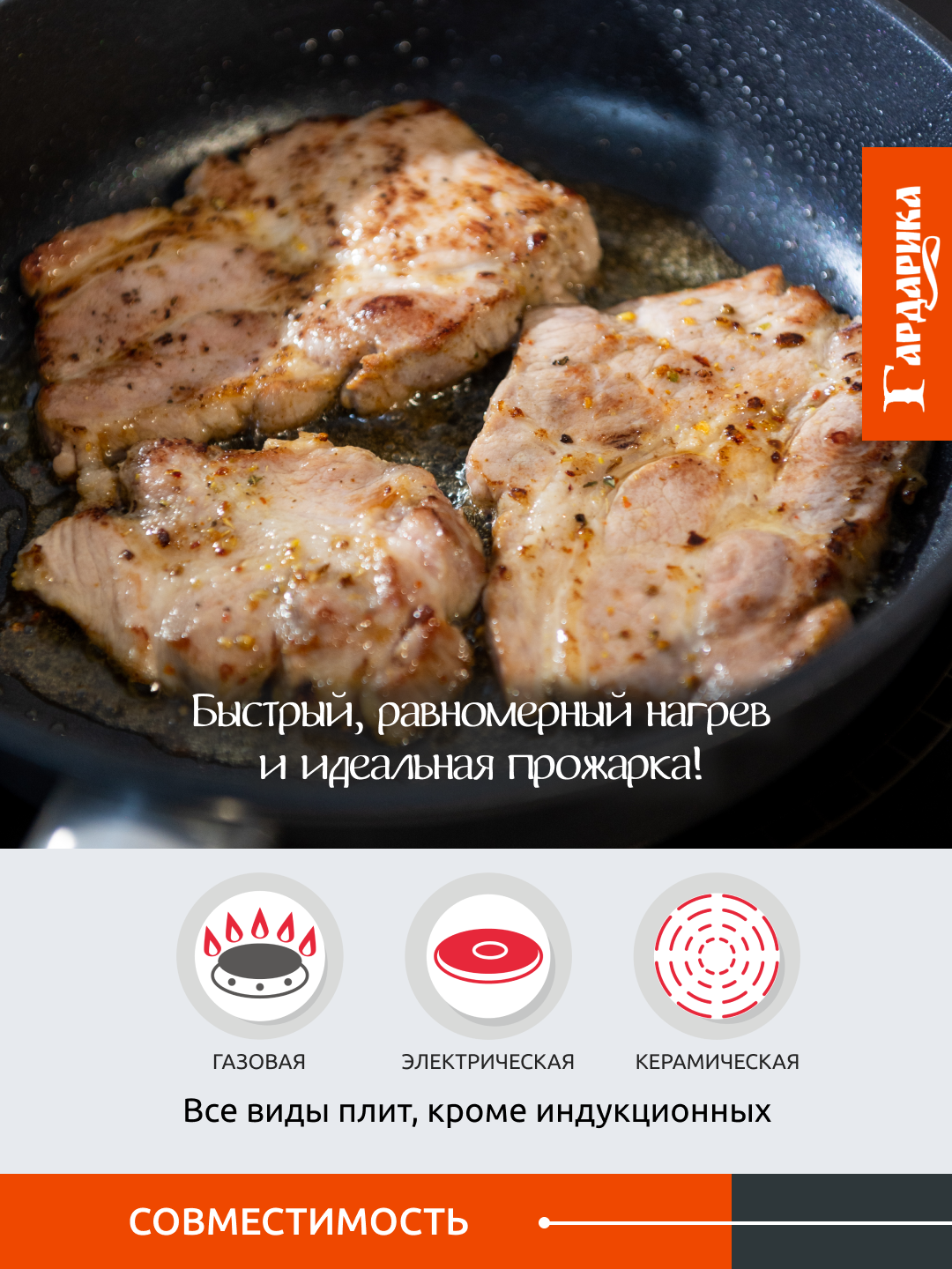 | Плюсы: | Сковорода очень понравилась, спасибо. Удобно что ручка сьемная, можно готовить в духовке. Хорошие , высокие борты. Не пригорает. |