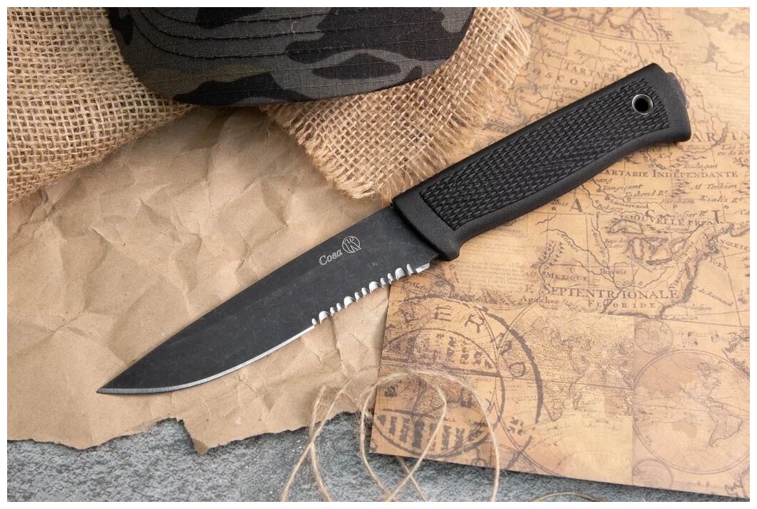 Нож разделочный Сова, эластрон, черный