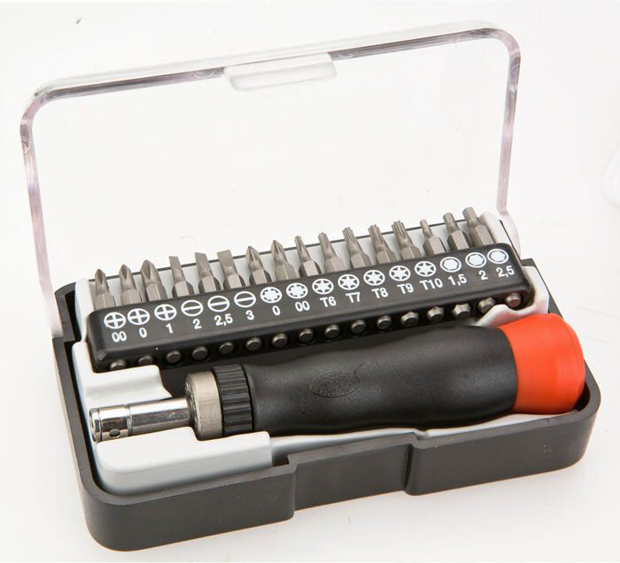 | Отзыв: | Для домашних работ набор - то, что надо. Биты ходовые, почти всем нашлось применение. Материал бит хороший именно для ручной работы, для шуруповерта будут мягковаты. В держателе насадки сидят без люфта, и это при отсутствии магнита. Набор помещён в компактный футляр, держится всё в ячейках надёжно. Правда, пластик футляра не самый крепкий, постарайтесь не ронять. |
