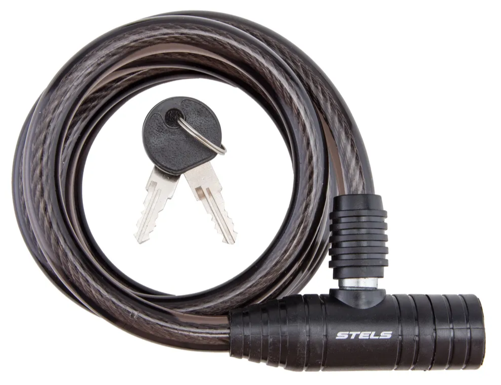 Замок для велосипеда 12х1500мм STELS 87301 с ключом, чёрный NEW