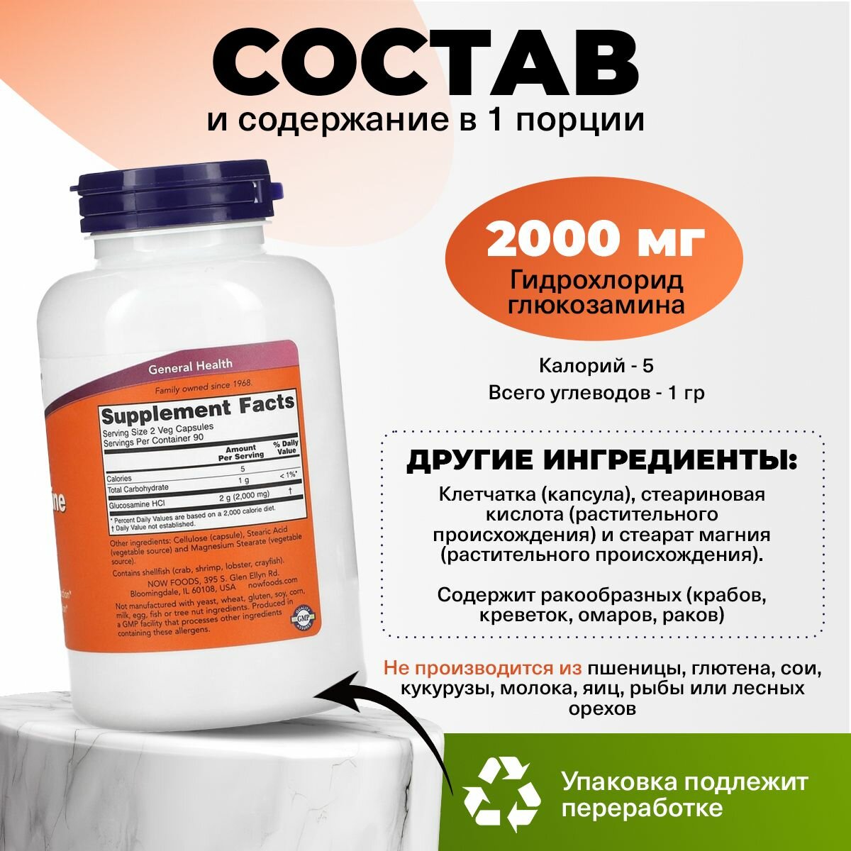 NOW Glucosamine 1000 mg, 180 капс. интересное: