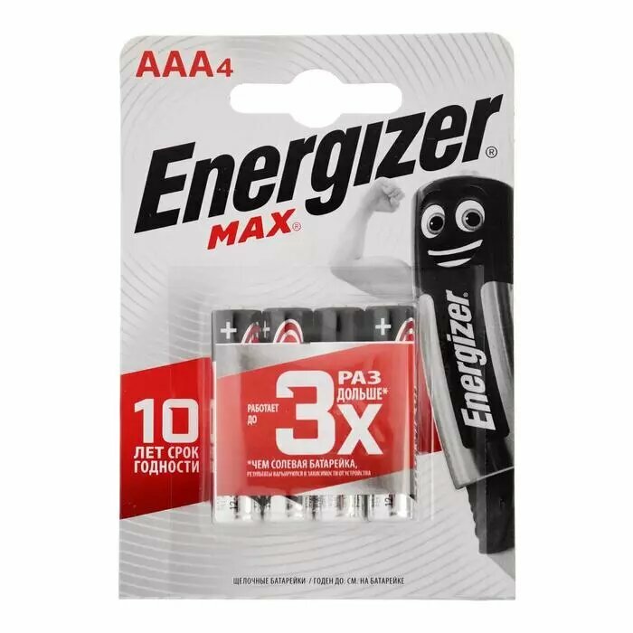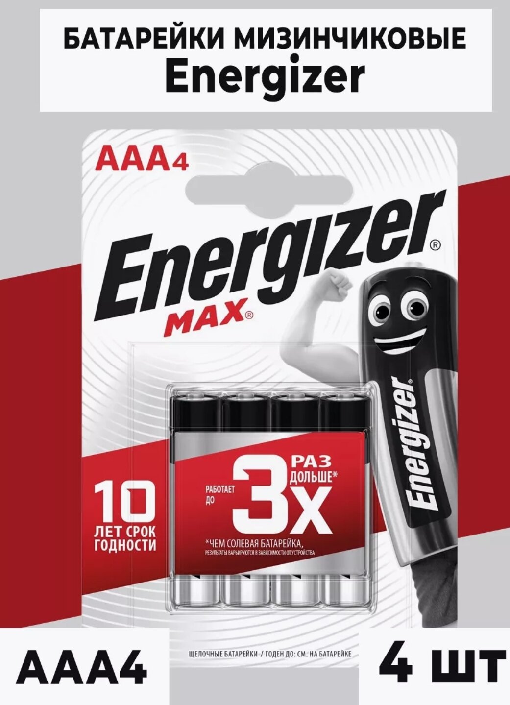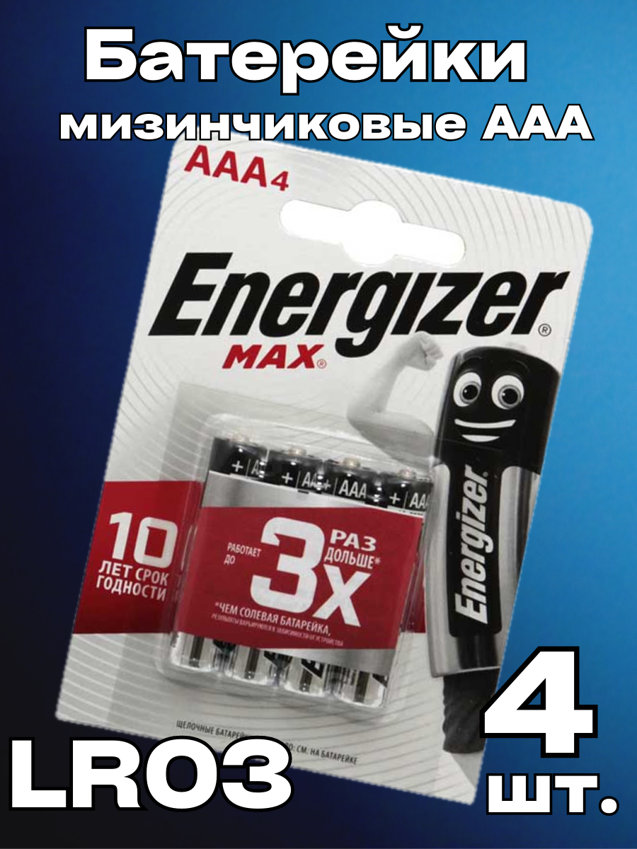Батарейки щелочные Energizer LR03 MAX BL-4, тип AAA, 1.5В, 4 шт в 1 уп