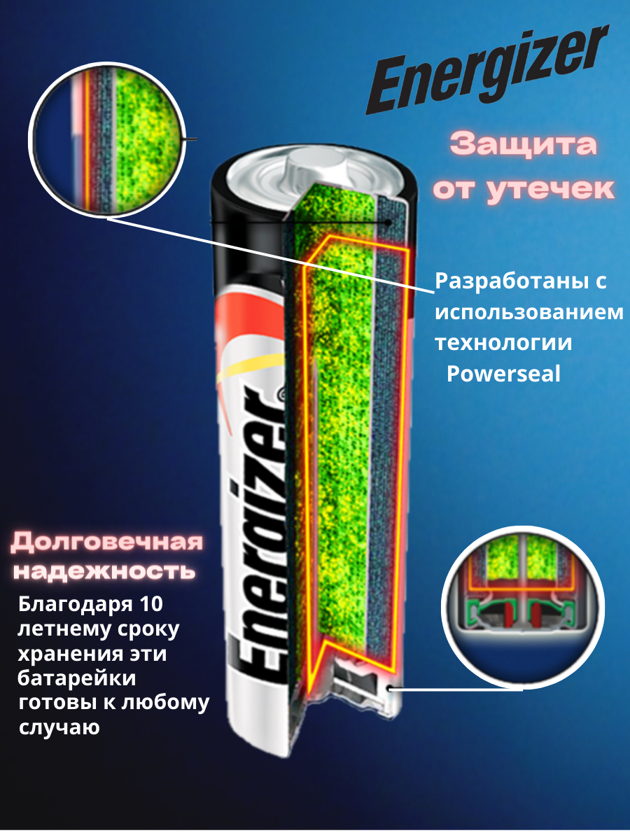 Купить Батарейки мизинчиковые Энерджайзер AAA/LR03 ENERGIZER (4ШТ) 10 лет срок годности.