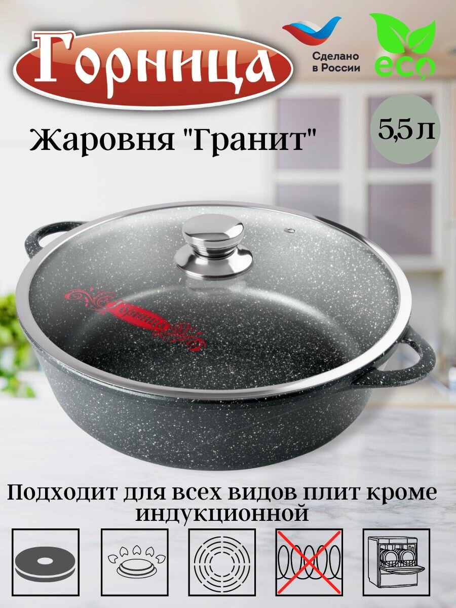 Жаровня 5,5л 320/95 Гранит с крышкой ж7132аг горница