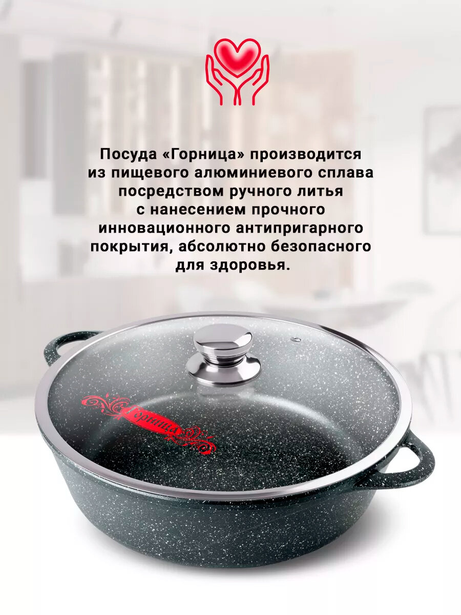 Жаровня алюминий, 4.5 л, антипригарное покрытие, Горница, Гранит, ж7130аг, с крышкой