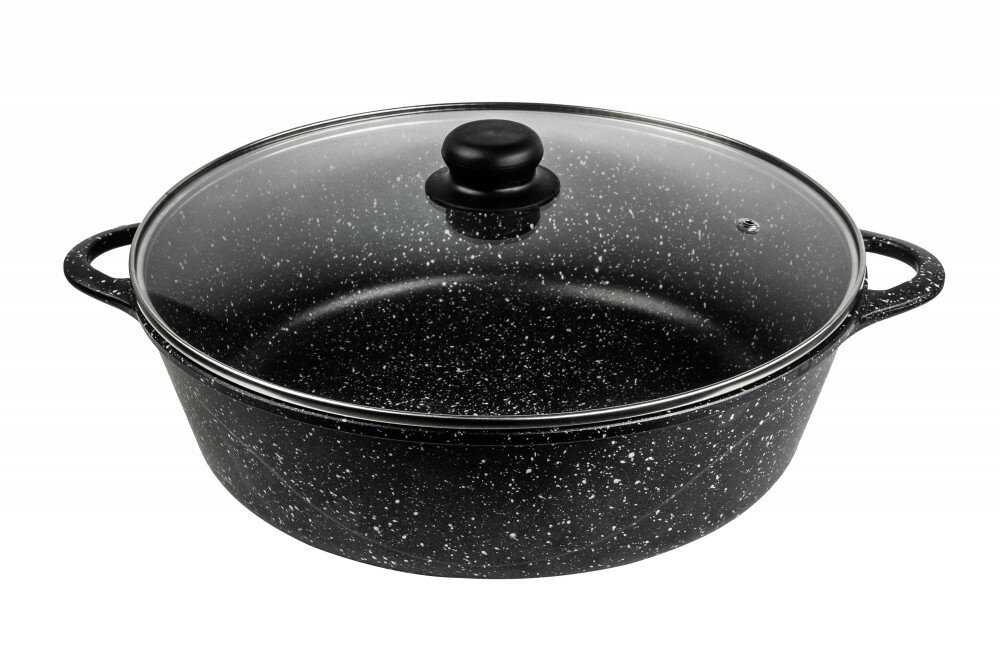 Жаровня антипригарная литая 28/7см 3.5 л со стеклянной крышкой Гранит ТМ Горница
