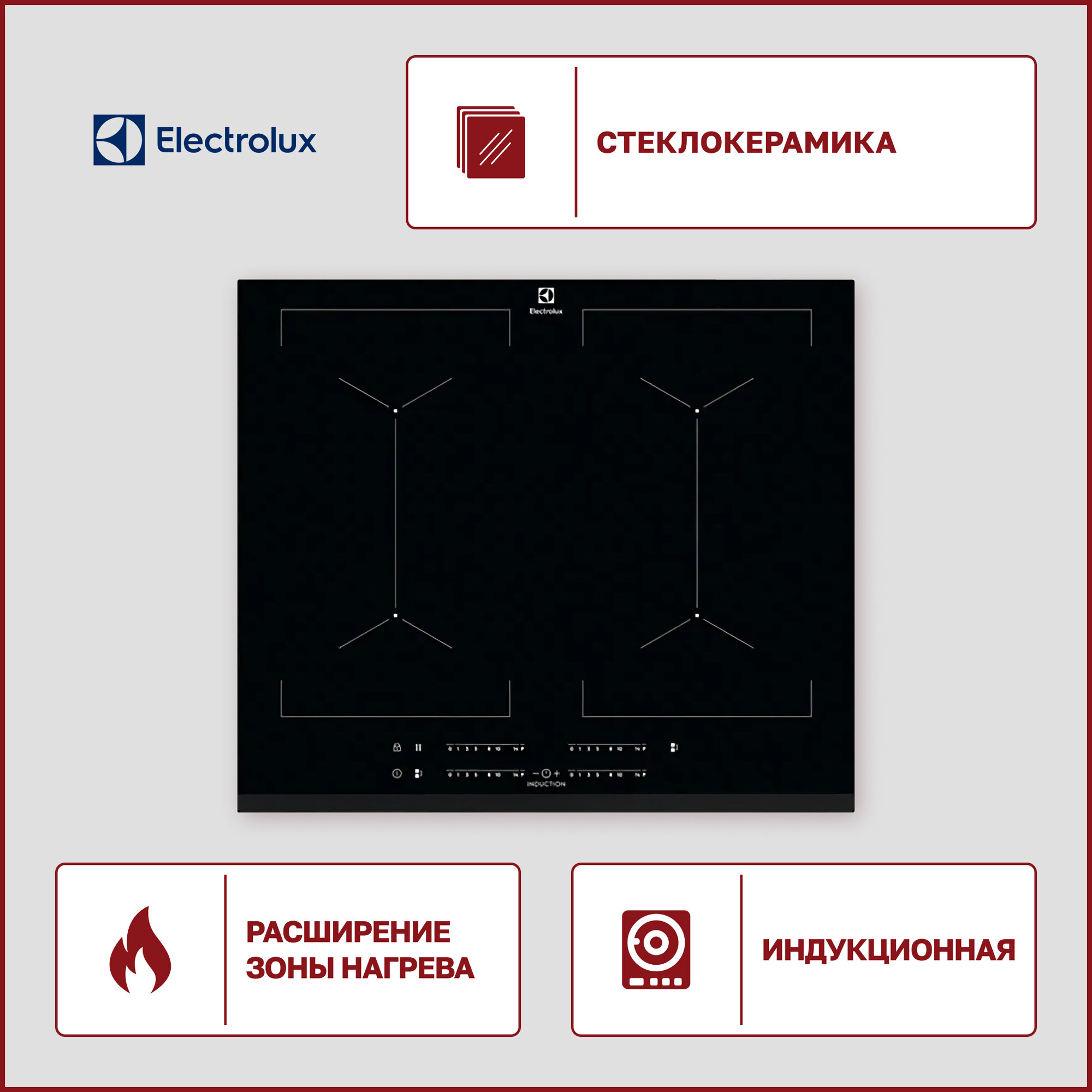 Купить Встраиваемая варочная панель Electrolux Индукционная на 4 конфорки, cтеклокерамика, мощность: 7350 Вт, независимая установка, размеры (ШхГ): 59x52 см
