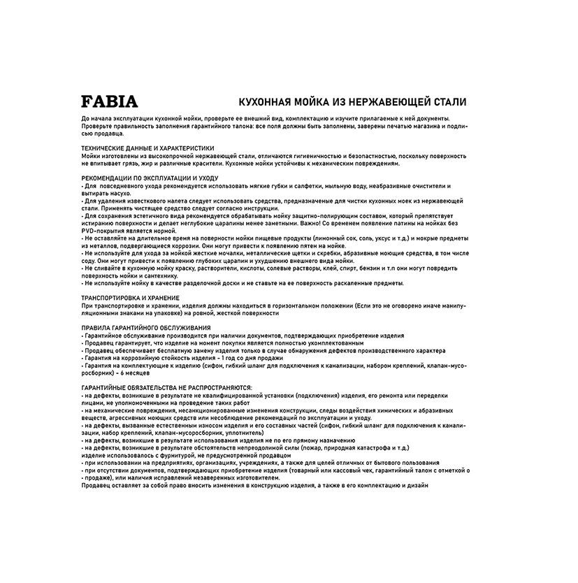 Врезная кухонная мойка Fabia Profi 80503R 0.8/200, 80х50см, нержавеющая сталь