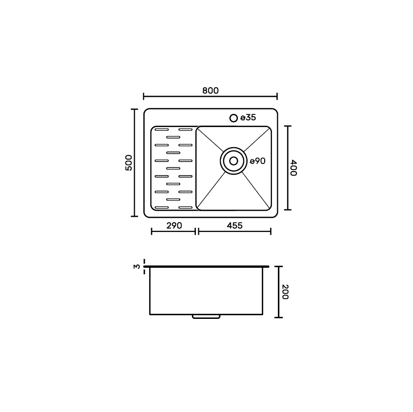 Мойка врезная Fabia Profi 80х50 (3х0,8/200) 80503R Правая + сифон 3 1/2"