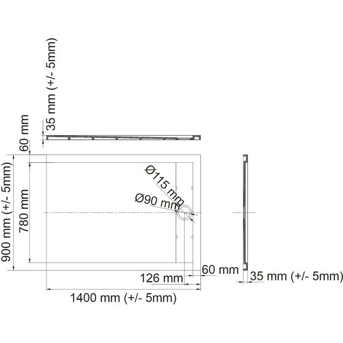 Душевой поддон WasserKRAFT Abens 90х140 20T36 матовый
