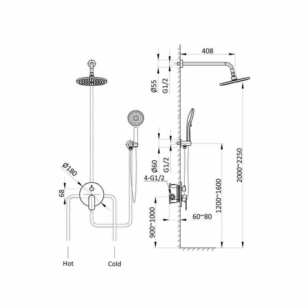 | Комплектация | верхний душ / ручной душ / Смеситель / шланг / держатель для лейки / кронштейн для верхнего душа / переключатель потоков / скрытая монтажная часть / Шланговое подключение |