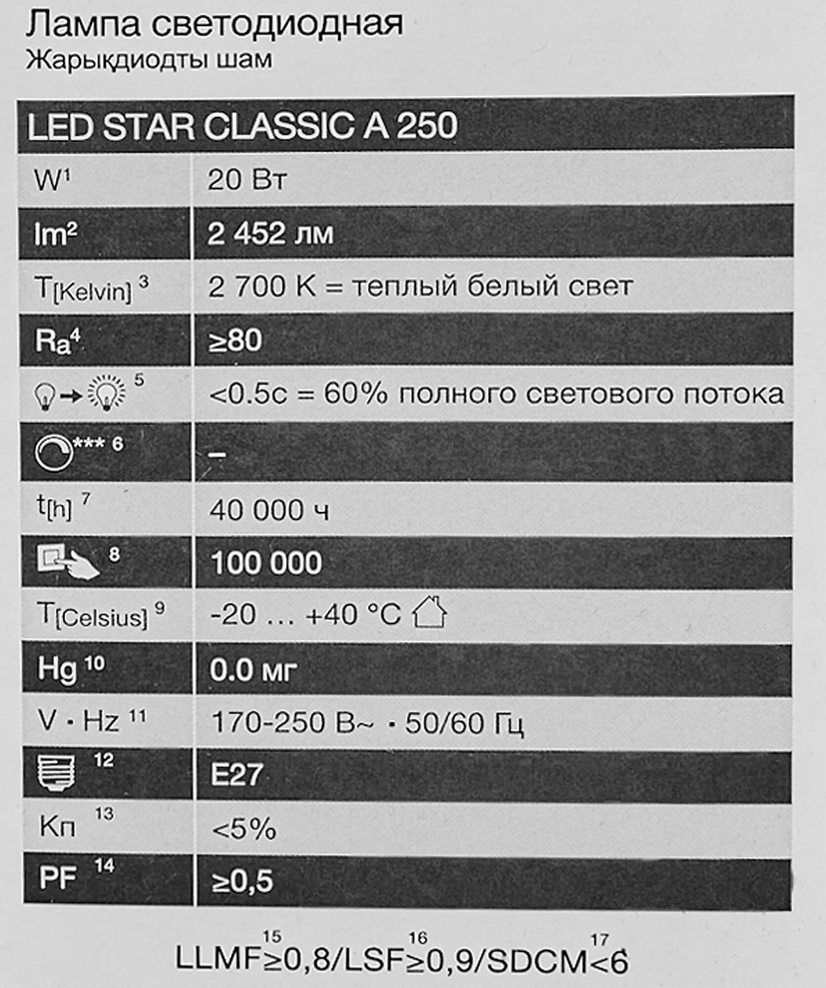 Лампа Светодиодная Груша 20W 220-240V E27 2452Лм 2700К Угол 200 град. D-70mm L-141mm Диммируемая Свет Теплый белый OSRAM, уп. 10шт интересное: