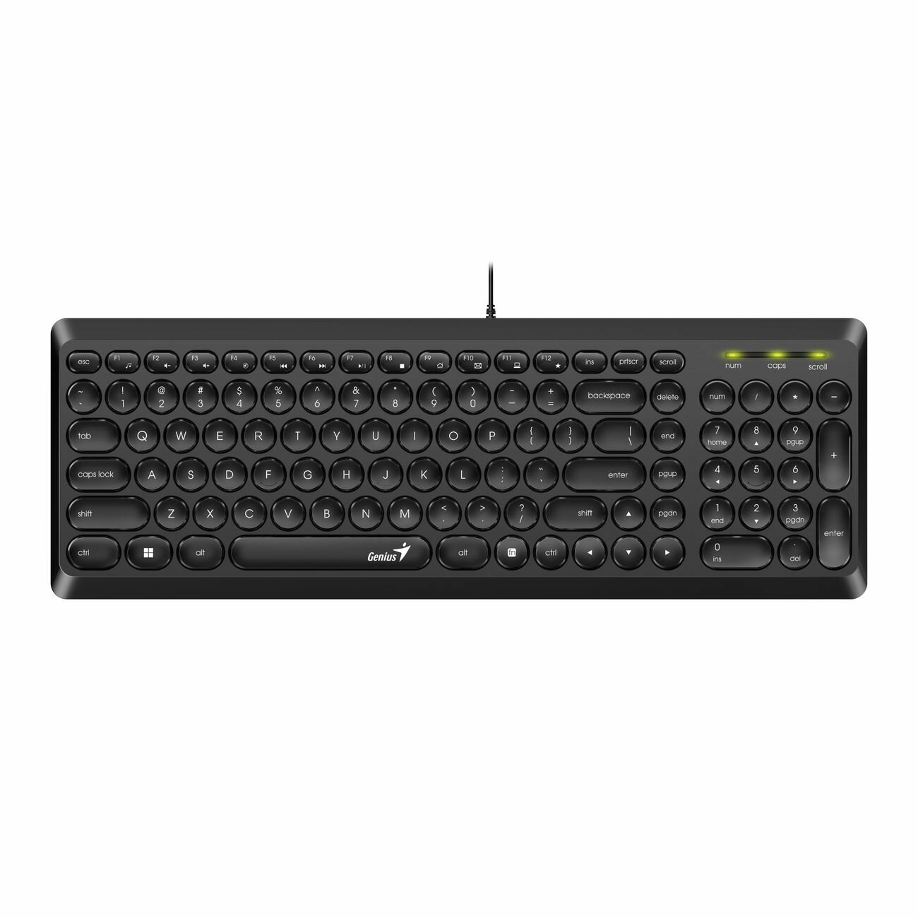 Клавиатура проводная мультимедийная Genius SlimStar Q200. 12 мультимидийных круглых клавиш, USB, под