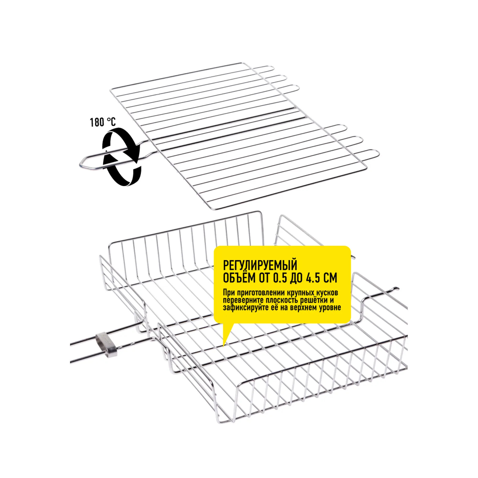 Решетка для барбекю Ecos RD-102D глубокая, регулируемая глубина, 31х24х5 см, общая длина 65 см
