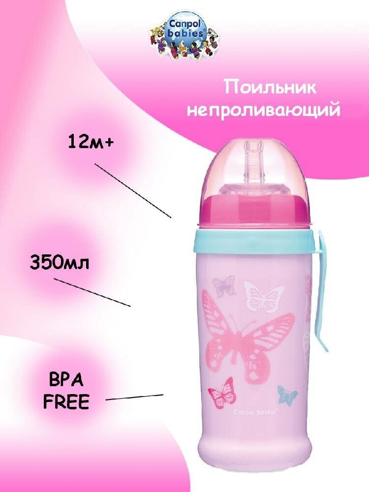 Поильник Canpol Babies непроливающий с трубочкой Розовый Butterfly 350 мл, cпортивный поильник-непроливайка интересное: