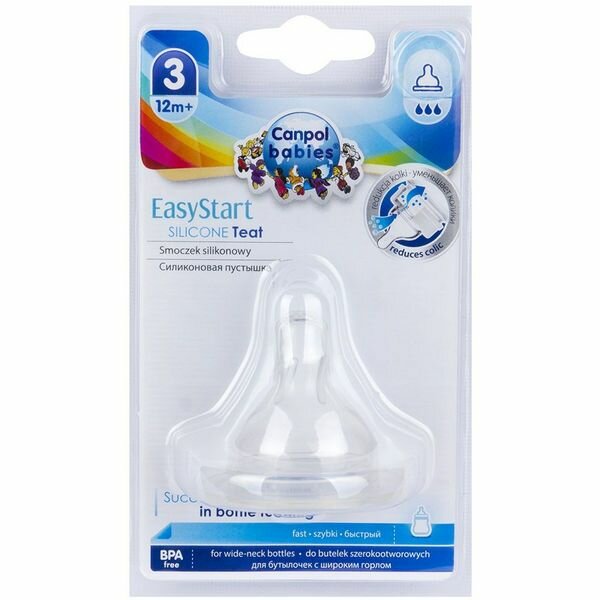 Соска Canpol Babies EasyStart силиконовая круглая №3, быстрый поток 12м+