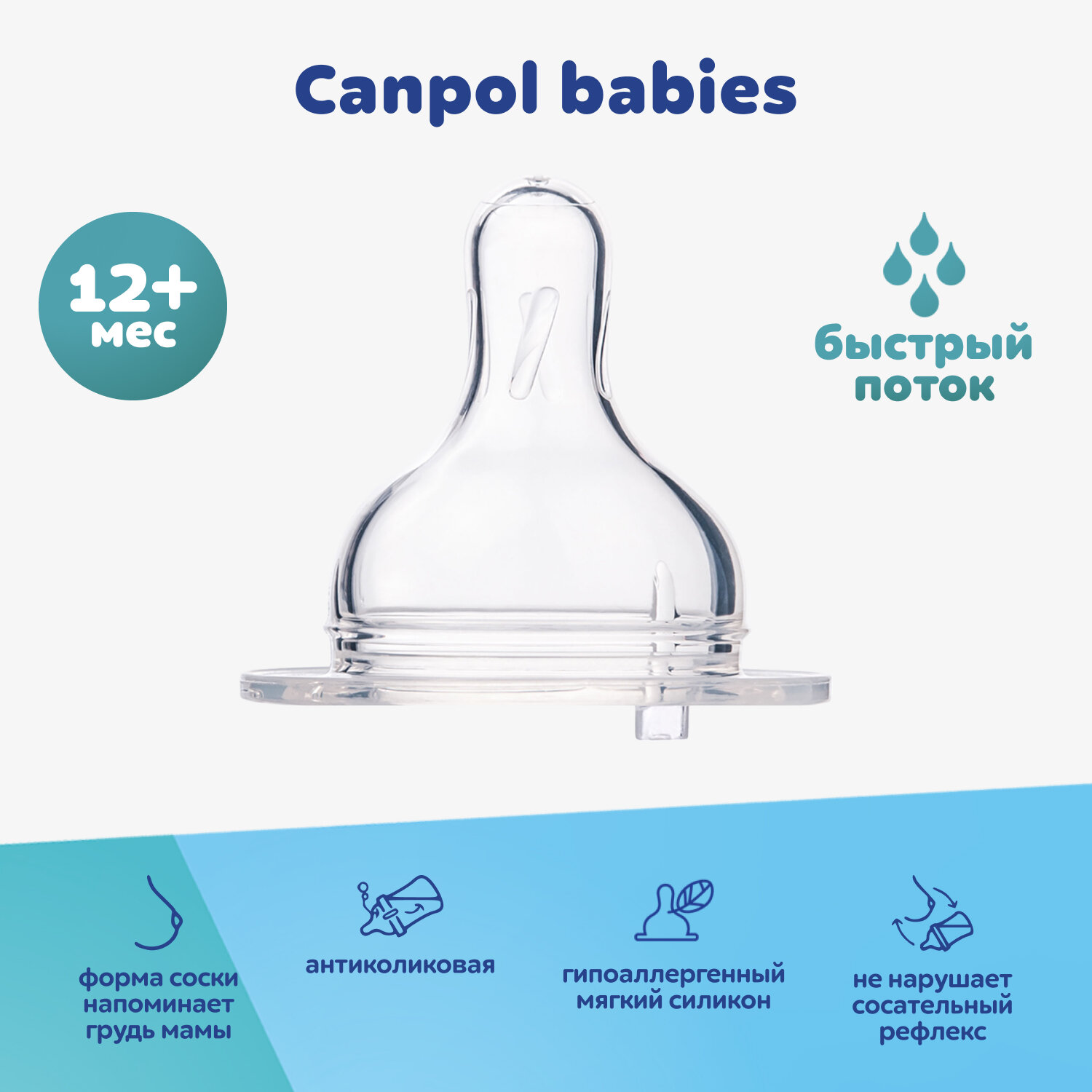 Соска для бутылочки Canpol babies, быстрый поток, широкое горлышко, от 12 мес