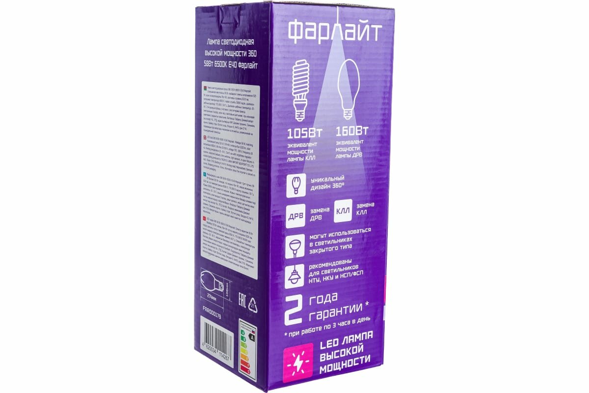 Светодиодная лампа Фарлайт высокой мощности 360 58 Вт 6500 К Е40 FAR000179